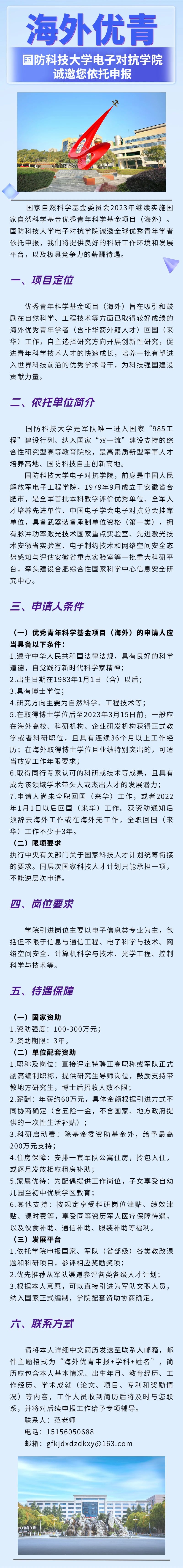 海外优青丨国防科技大学电子对抗学院诚邀您依托申报