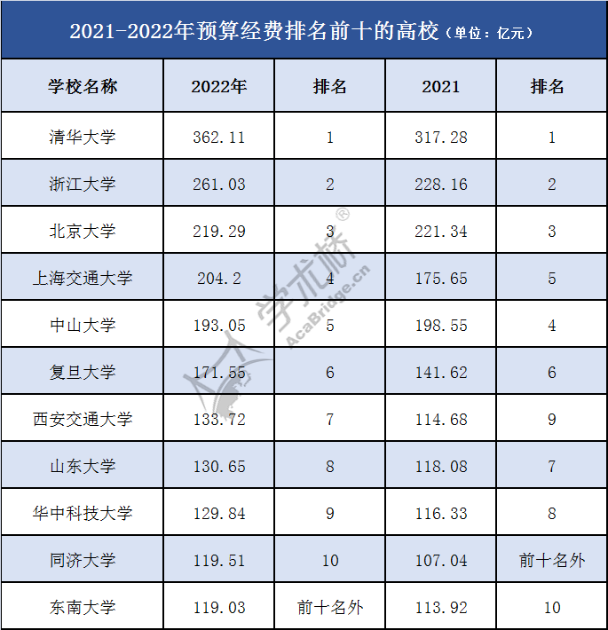 高校经费预算,反映的是对学科建设、教学、科研方面的投入力度。尤其是对于“双一流”的国内重点高校而言,办学经费的多寡就显得更加重要,将很大程度上影响“双一流”建设的快慢。因此,每年各高校年度预算都备受社会关注。