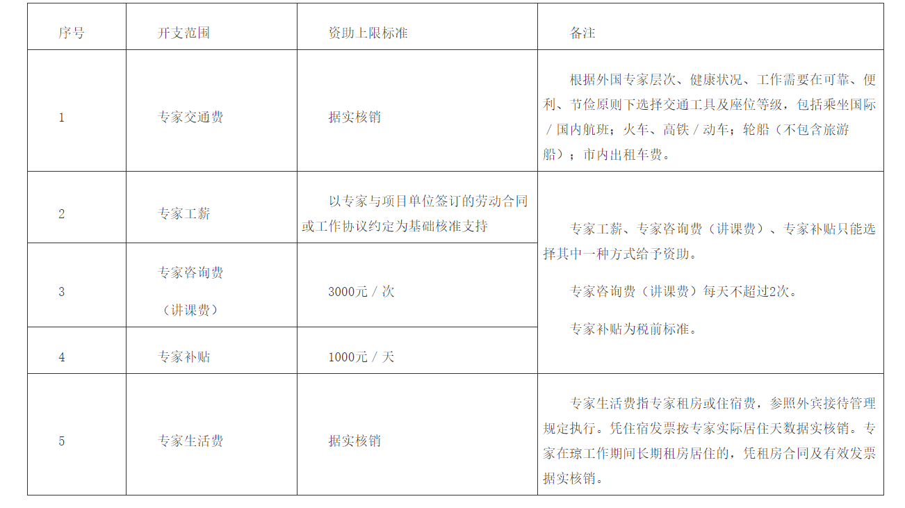 (五)专家生活费:指外国专家在琼工作期间实际发生的租房(住宿)费、物业管理费、水电费等;