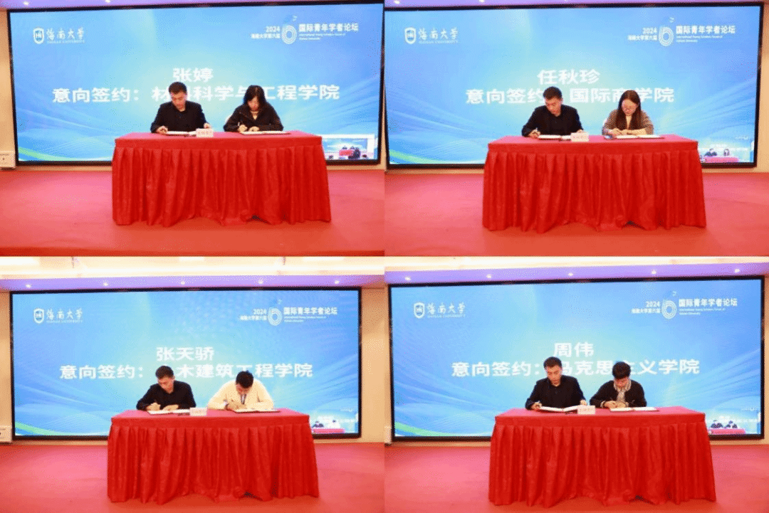 论坛闭幕式上,来自国内外知名院校的100名青年学者与海南大学签订了就业意向书。