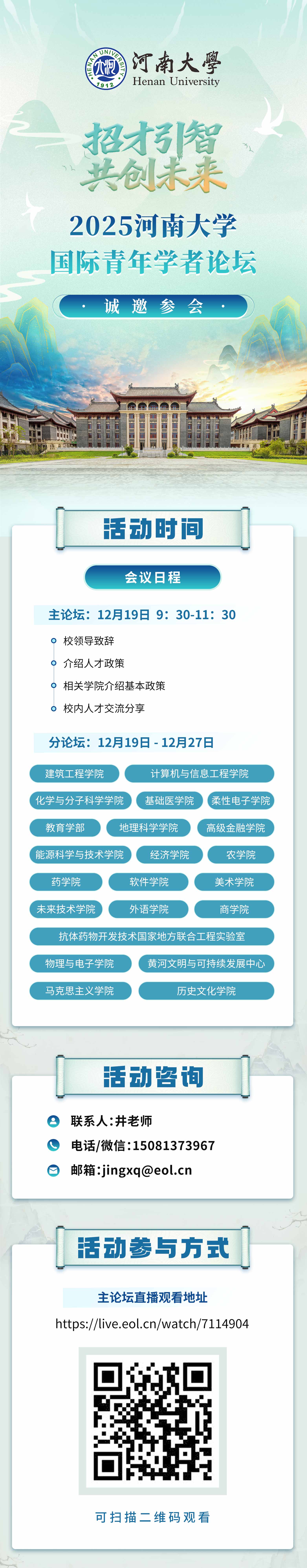 12月19日!河南大学2025年国际青年学者论坛与您相约云端