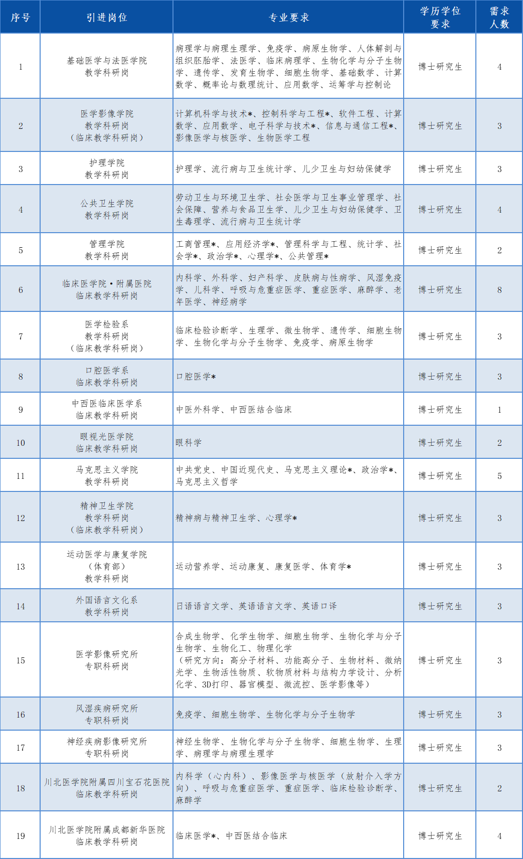(二)简历直接发送至邮箱:cbyxyrscrsk@163.com或登录川北医学院人才招聘官网在线申请职位:http://zp.nsmc.edu.cn/。