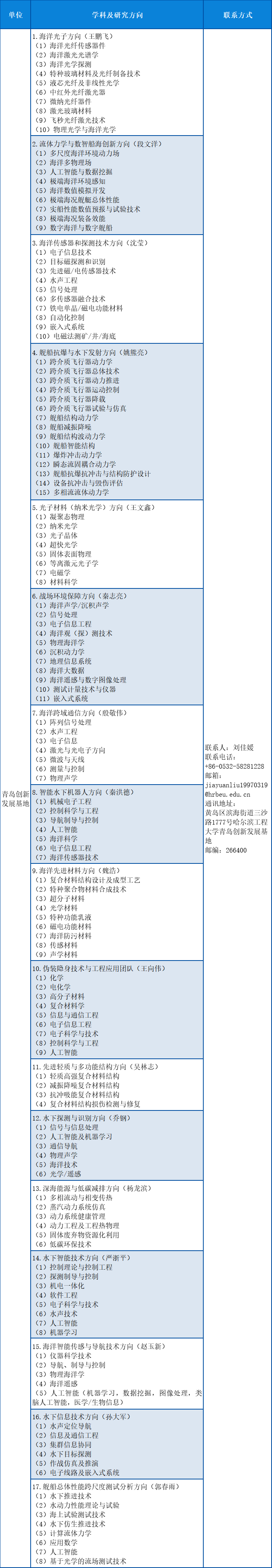 (二)青岛创新发展基地招聘教师学科及研究方向