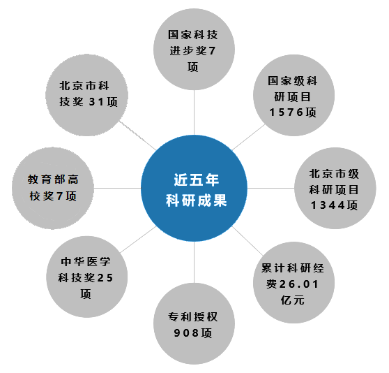 首都医科大学科研基础雄厚,拥有6个国家临床医学研究中心,1个国家儿童医学中心;1个省部共建国家重点实验室培育基地、2个省部共建协同创新中心、5个教育部重点实验室、1个北京市高精尖创新中心、1个北京实验室、54个北京市重点实验室;1个国家工程实验室、1个国家工程技术研究中心、3个教育部工程研究中心、10个北京市工程技术研究中心。