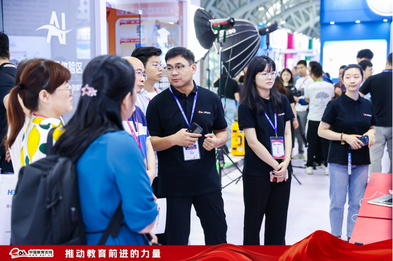 拥有丰富的科技服务和海量的教育数据资源,本次高博会, ,新颖的展示形式吸引了众多老师参观体验。